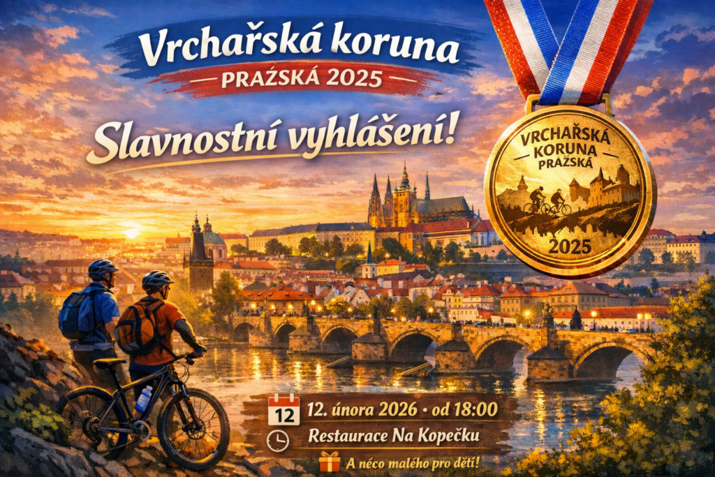 Čeká nás pohodový večer plný cyklistických historek, setkání s ostatními vrchaři a hlavně medailový moment, na který se těší každý, kdo si korunu poctivě vyjel 🏅